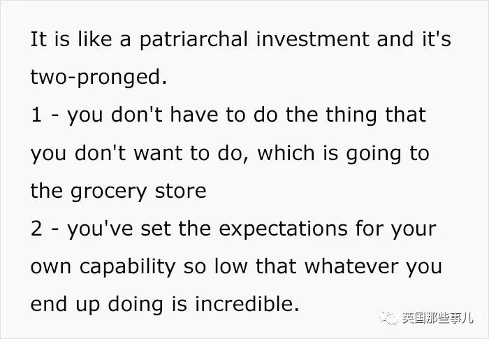 所以事实上,这种无能的表现其实是一种丈夫对未来的投资。”