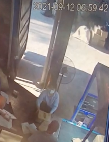 9月12日6时59分39秒,一名男分拣员发现了这个写有侮辱字眼的包裹,他拿起包裹仔细看了这段文字。