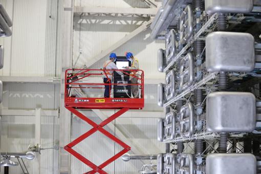 国网北京电力员工在张北柔直工程延庆换流站开展检修。