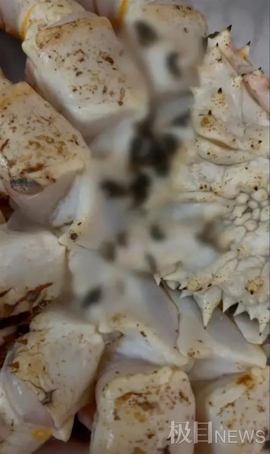 曹女士表示,在处理时,她发现帝王蟹背面的钳子附近布满了活体爬虫,刚刚下的订单配送到家,为何会有如此多虫子,曹女士对此感到不解。随后她联系配送订单的商家,对方表示这种情况是正常的,洗洗之后就可以吃。但看到蠕动的虫子,曹女士对此并不能接受。