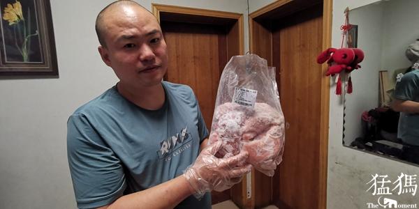 “我是9月13日通过平台下的单,第二天中午11点10分左右收到的订单。当时也没仔细看,等中午打开包装准备做饭时,才发现肉有问题。”田先生说,肉的表面有很多颗粒状东西,一眼就能看出来,并且整块肉上也没有那种蓝色的检验检疫章。田先生怀疑自己买到的可能是老百姓常说的迷信猪肉。