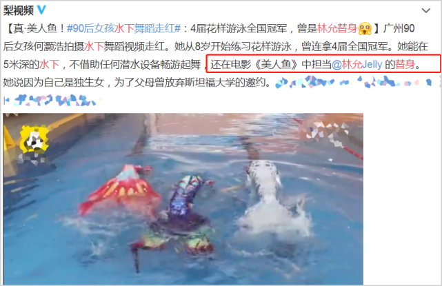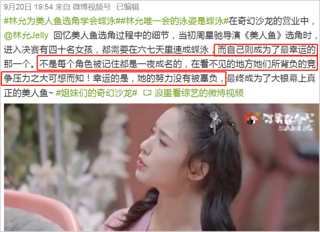 另外还有人指出,林允方面之前的宣传口径是因为自己本身就“会游泳”,由此才幸运的被选为“美人鱼”,为何现在林允又称自己不会游泳,唯一学会的只是“蝶泳”了?