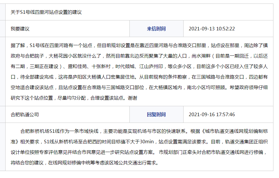 合肥轨道公司回复:合肥新桥机场S1线作为一条市域快线,主要功能是实现机场与市区的快速联系。根据《城市轨道交通线网规划编制标准》相关要求,S1线从新桥机场至合肥西的时间目标值不大于30min,站点设置需满足该要求。目前,轨道交通集团正组织设计单位按照专家评估意见并结合市民意见进一步研究站点设置方案。市规划部门正牵头对合肥市轨道交通线网进行修编,将结合您的建议,在线网规划修编中统筹考虑该区域公共交通出行需求。