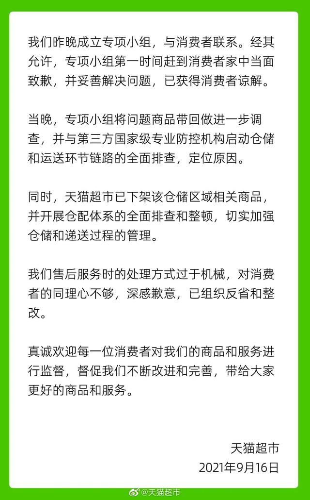 消费者投诉当晚,第一时间成立专项小组,赶赴消费者家中当面致歉,并已妥善解决问题,得到了该消费者的谅解。